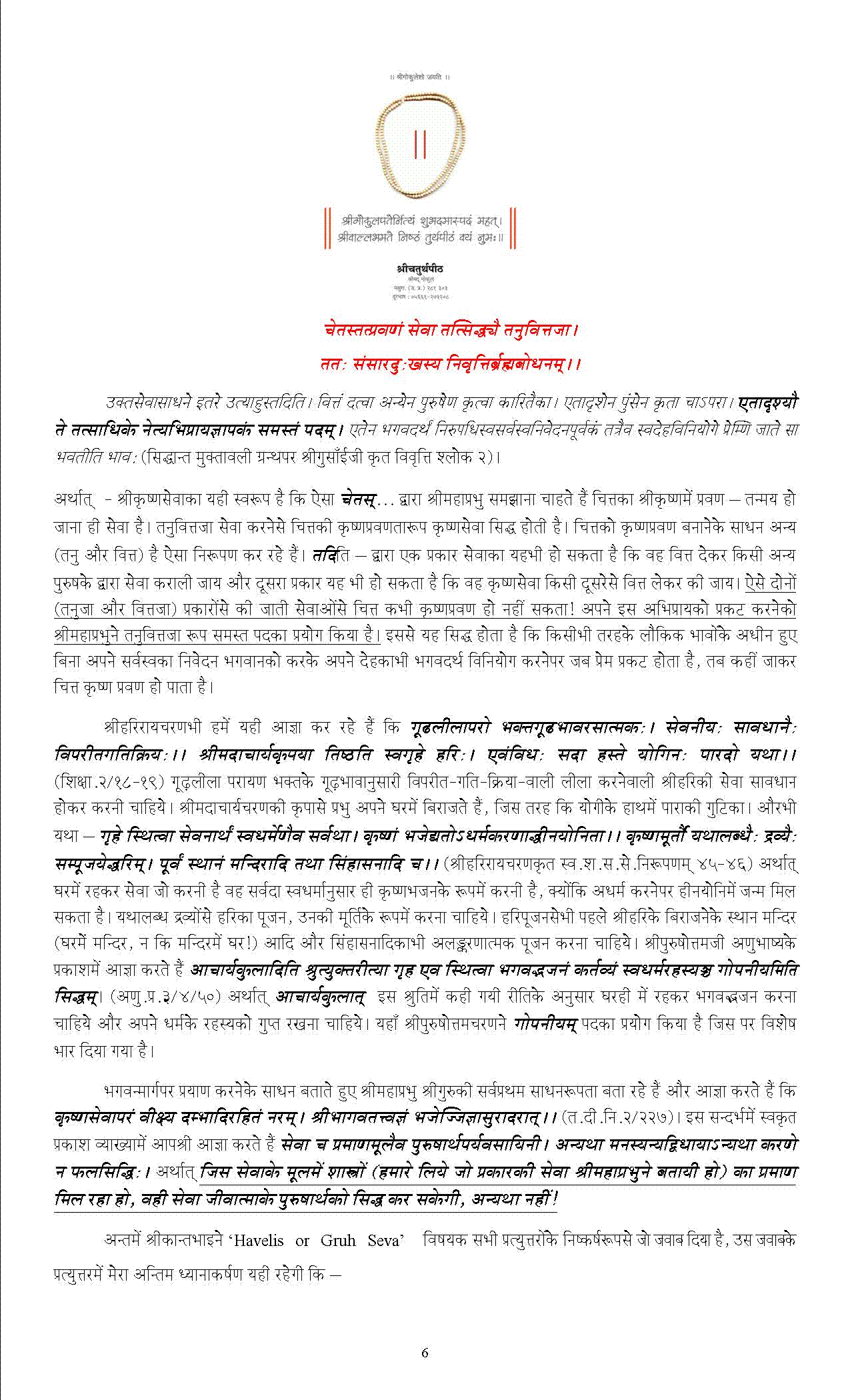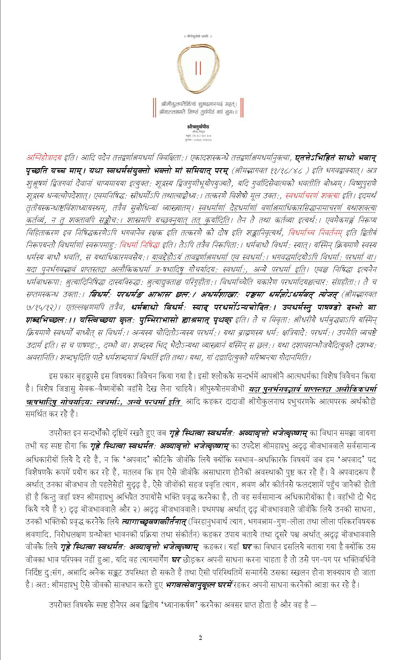 " Vaarta Saahitya mein bhi nijbhakton ko Shriji sanmukh tatha Shri NAVNEETPRIYAji sanmukh Nij Grahon mein DARSHAN,MARGIYA PADHATTI tatha Saampradayik Sukshmtaon se Aacharyon ne Parichit karaaya hi hai..."