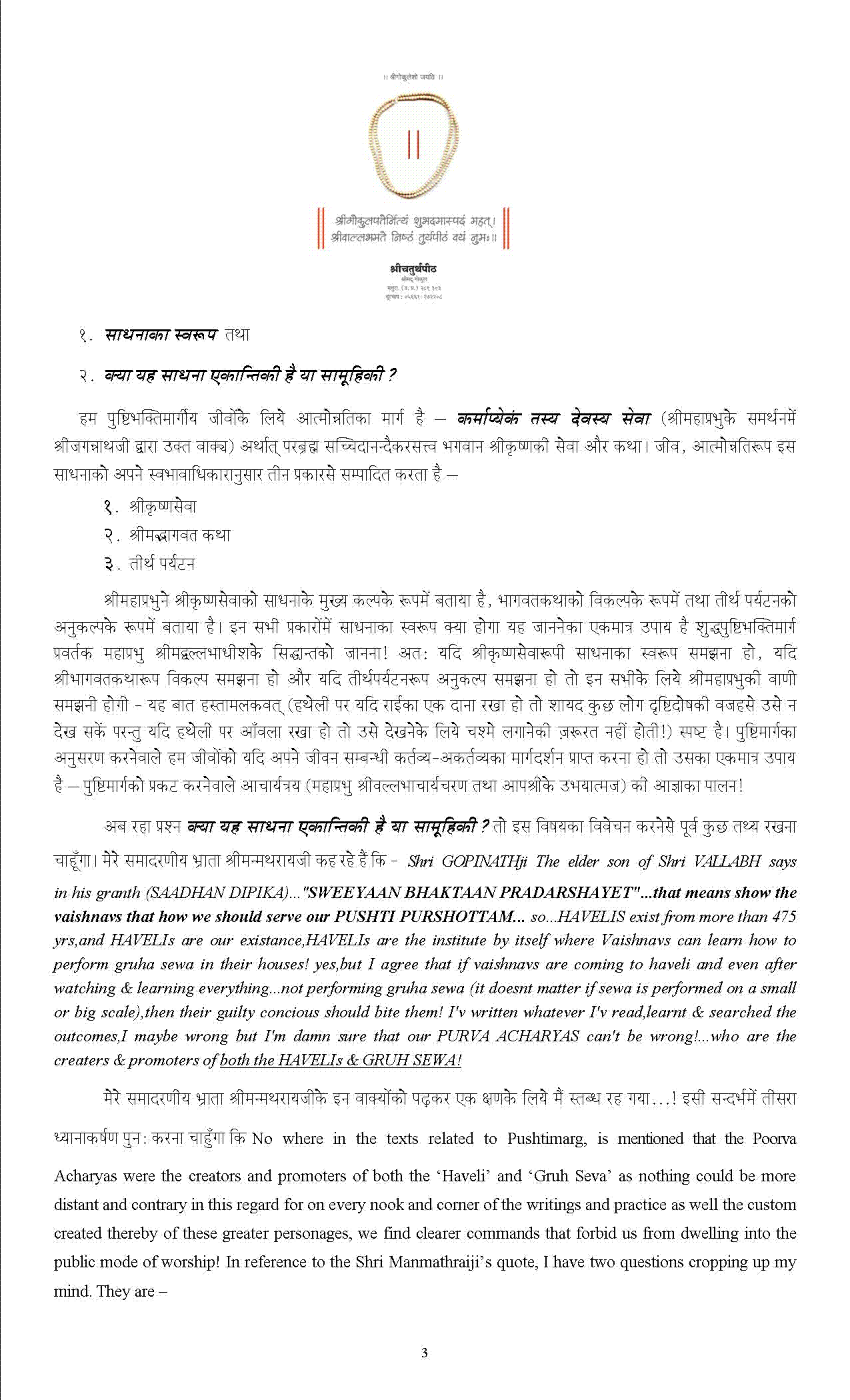 Let havelis and satsang halls be the starting point into learning about Pushtimarg and not the final goal. so these places will encourage vaishnavs to learn about pushtimarg and help them apply the teachings in practice.